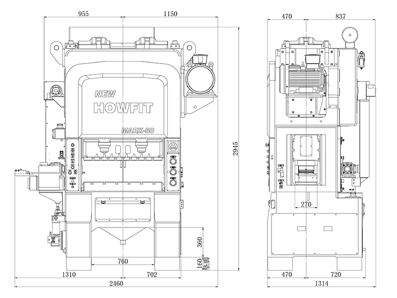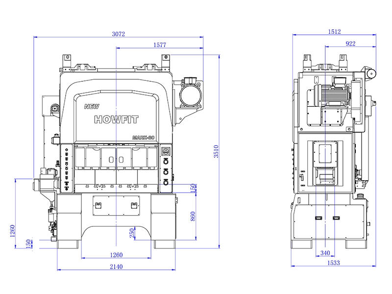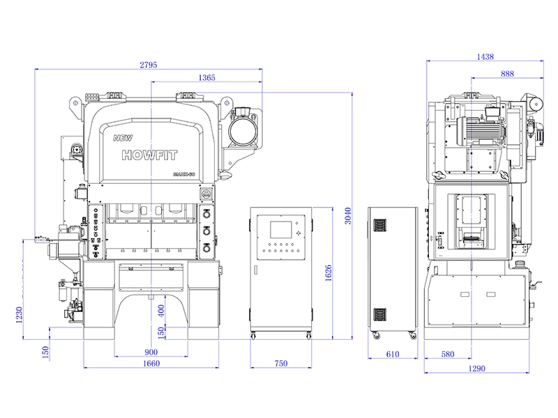 Примечание: приведённые выше характеристики основаны на данных, предоставленных заказчиком. Отдельные параметры, такие как высота закрытия, диапазон хода, окно станины и размер окна сброса отходов, могут быть настроены в соответствии с технологическим процессом или требованиями к чертежам заказчика.