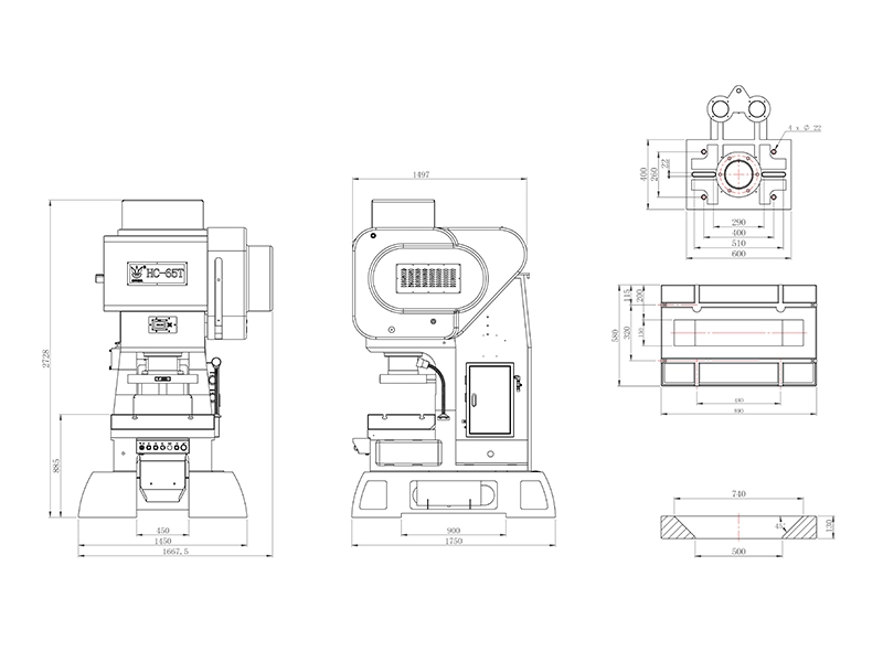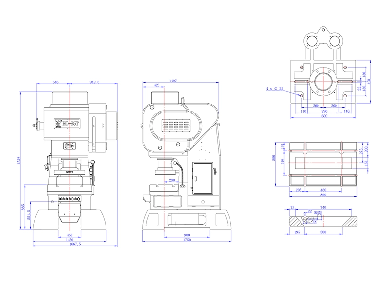 Одностоечный пресс (С-образная конструкция) с тремя направляющими колоннами выпускается в нескольких конфигурациях и обеспечивает усилие 16–80 т, ход 20–50 мм и рабочую скорость 200–800 ходов/мин. Высота закрытия составляет 180–300 мм, мощность главного двигателя 4–18,5 кВт. Оборудование предназначено для штамповки пластин ротора и статора, формовки клемм и выводных рамок, штамповки металлических компонентов и производства крышек для банок. Пресс демонстрирует стабильную точность и универсальную производительность в широком спектре задач. Для автоматизированной линии он может комплектоваться подающим устройством, правильной машиной, разматывателем и рубителем отходов.