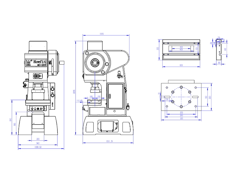Высокоскоростной C-образный пресс с 3 направляющими колоннами обеспечивает усилие 25 т, диапазон хода 20-40 мм и рабочую скорость 200-700 ходов в минуту. Оснащён рабочим столом 600×330 мм, ползуном 320×220 мм и окном сброса отходов 100×400 мм. Компактная, но мощная конструкция обеспечивает стабильную и точную работу при непрерывной высокоскоростной штамповке пластин ротора и статора, выводных рамок, метизных деталей и крышек для банок.